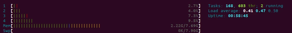 Vejamos o exemplo do LA mostrado via comando htop: