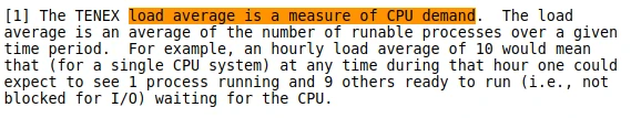 Antigamente (nos kernels mais antigos) o load da máquina era calculado apenas com base nos processos que estavam especificamente no status runnable. Ou seja, processos que estão, de fato, sendo executados no processador. Aí se criou a famosa frase “Um load de até 1.0 é bom para um processador single-core. Já com um processador quad-core um valor de até 4.0 é bom”. Esta não deixa de ser uma medida, porém não é nada precisa e você já entenderá o motivo.