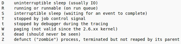Você pode verificar estes status de cada processo com o comando top, na coluna “S” (entre SHR e %CPU). Veja que vários estão com o status “S” de interruptible sleep: