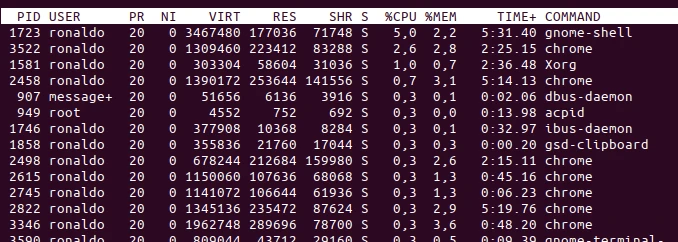 Como exemplo acima temos o Google Chrome (processo com nome “chrome”). O navegador fica aberto, mas geralmente está aguardando algum evento para ser enviado para o processador e entrar no status “runnable”.