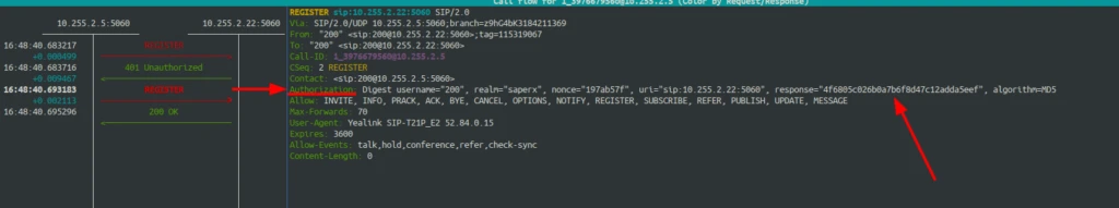 Note que agora, diferentemente do primeiro REGISTER, temos a linha "Authorization". Agora sim estamos a um passo de registrar, de fato, o ramal.