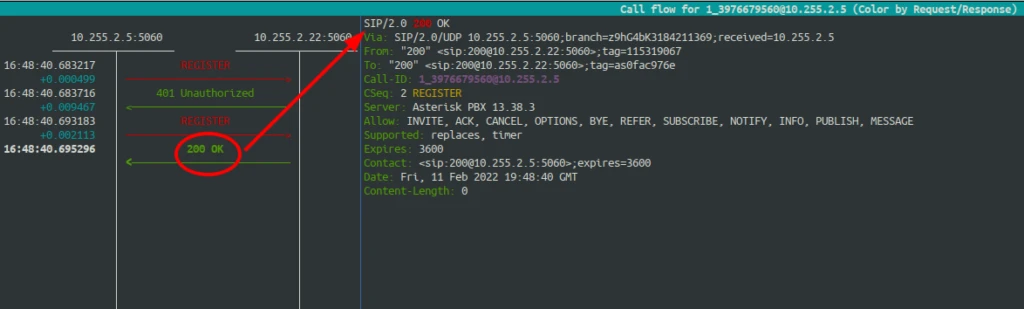 Veja na primeira imagem acima está mostrando o primeiro pacote REGISTER.