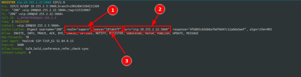 Além das informações acima, você vai precisar coletar no pacote SIP as 3 informações abaixo (são fornecidas pelo 401 Unauthorized):